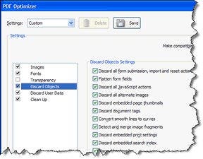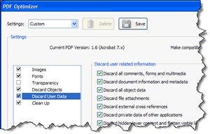 - Click OK. Name the new PDF Optimizer Settings when prompted.