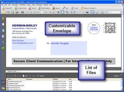 Security Envelopes can be customized to include your company logo and branding. Essentially, this Acrobat feature is the digital equivalent of pre-printed envelopes.