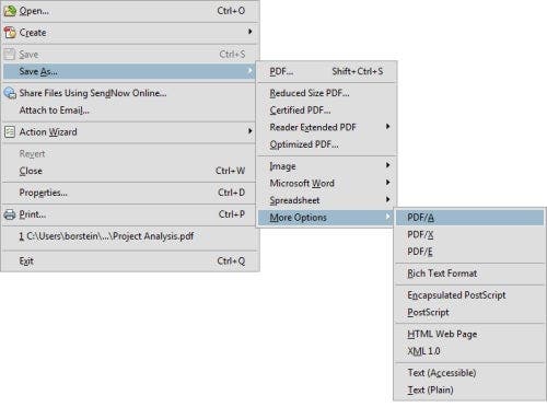 - Choose File> Save As> More Options> PDF/A