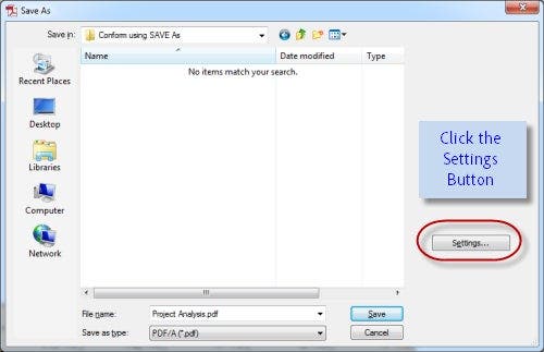 - Click the Settings button in the Save As window
