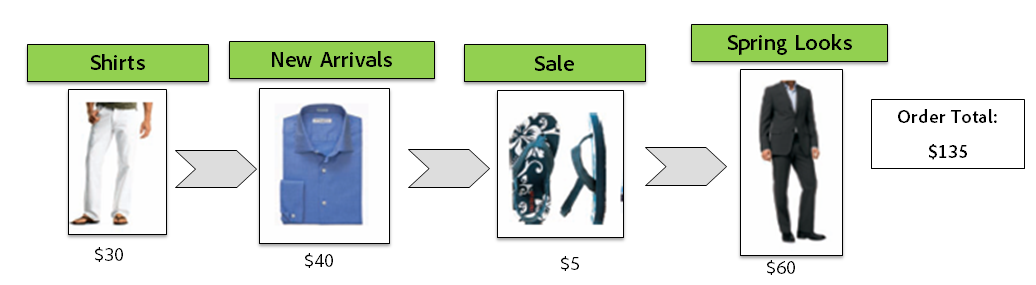 Let’s look at an example: A customer views and purchases 4 products on your site. For each product they purchased them from 4 different web categories, and used multiple different site features for each product. How do you allocate the $135 order total? Merchandising variables allocate the revenue at the product level, so each category gets the credit for their product.
