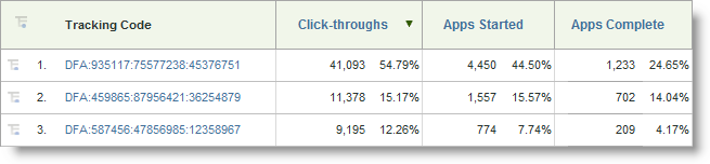 When a potential customer engages (better known as clicked) with your display ad, the click is first routed through DART’s servers where those macros pick up a numeric value based on what site the ad is being shown on and which placement and creative are being served. Then it’s on to your desired URL where the final rendered URL will look something like*: http://www.yoursite.com/index.html?cmpid=DFA:935117:75577238:45376751