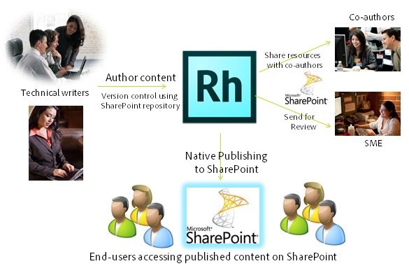 https://blog.adobe.com/media_14a249dbd661463d7fb4d003732ce36dad3c3627.gifRoboHelp 10 supports version control with Microsoft SharePoint 2010 natively, which means you do not need to install any third-party plugins. You can share/link SharePoint assets across multiple RoboHelp projects and authors using Resource Manager in RoboHelp. Host the PDF for _review in the SharePoint _workspace. And finally, publish RoboHelp content directly to a SharePoint site from within RoboHelp.