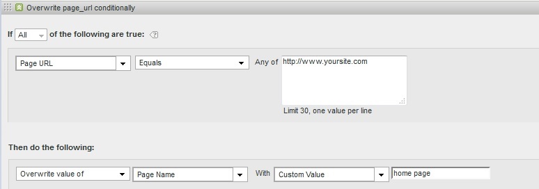 Voila! You’ve now most likely produced a list of URLs for pages on your site that have SiteCatalyst code but do not have the pageName variable set within the SiteCatalyst code. Horrible, right? Wrong! This is exciting because you have an immediate opportunity to improve your SiteCatalyst implementation! Go ahead and deliver this report to your development team and ask them to insert a value into the pageName variable within each URL’s page code. Remember that if the pageName variable is not set within the page code, then SiteCatalyst will automatically assign the URL as the page name at the time of data collection/report processing.