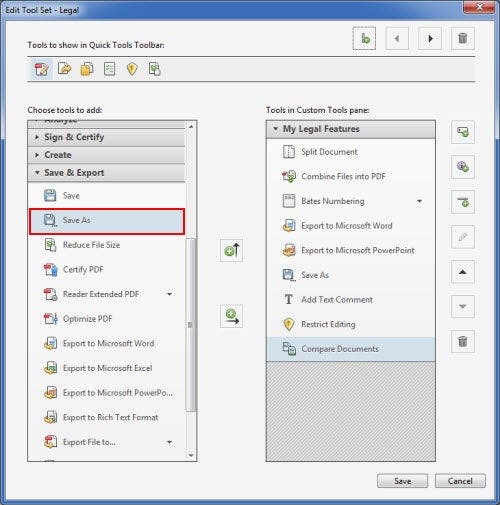 In Acrobat XI, you can create a new Tool Set to capture settings for Task Panes and Quick Tools. Settings files may be exported and imported making them easy to share with colleagues.