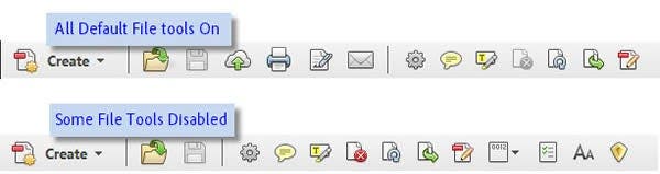 By default, all of the File Menu tools are on in Acrobat and you probably won’t want to change them. These tools are: