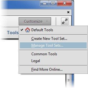 Click the Customize button and choose Manage Tool Sets . . .