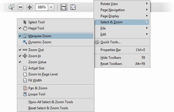 Zoom in, Zoom out . . . these are operations you may do frequently in Acrobat, so it makes sense to put tools up front where you can find them.