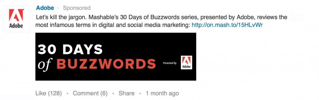 A few months ago Adobe was approached to be a beta partner for Sponsored Updates. Our own Pooja Prasad wrote in a blog about the testing, that “we knew we had to try it.”