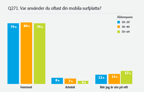 Konsumenter uttalade att 80% av användandet av surfplattor sker hemma, och detta är troligtvis varför användare av surfplattor spenderar mer tid i e‑butiker än användare av smartphone.