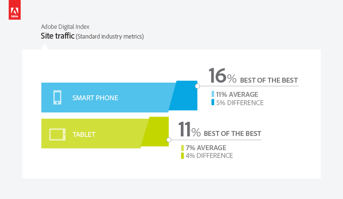Almost every car manufacturer has a tailored and mobile-optimized site, demonstrating the automotive industry’s commitment to targeting mobile traffic. As a result, the automotive industry is attracting more mobile visitors than all other industries with the exception of retail, travel and hospitality. We see a large difference in the ability to attract mobile visitors between automotive websites that are mobile-optimized and those that are not. Non-optimized automotive sites receive 11% of their visits from smartphones and 7% of their visits from tablets, while mobile-optimized sites receive about 50% more traffic from these devices (up 5% and 4% respectively).