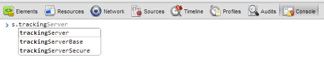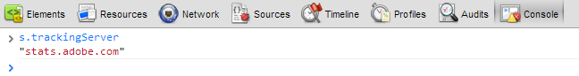 2. With the Console tab selected, type s.trackingServer and hit Enter.