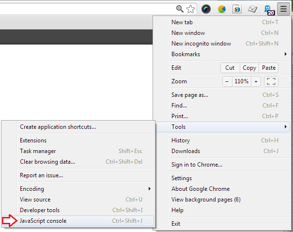 1. Go to your web site in Chrome and then go to Chrome Menu > Tools > JavaScript Console.
