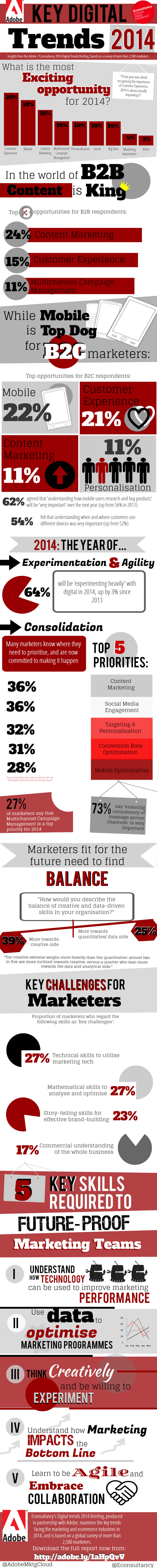 Adobe’s 2014 Digital Trends Briefing, in association with Econsultancy, highlights the key digital trends, challenges and opportunities that marketers need to be aware of during 2014–covering topics ranging from customer experience and mobile to cross-channel marketing and email.