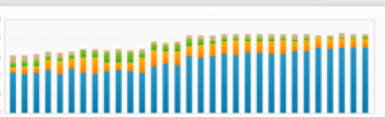 When analyzing the impact, we looked at the visibility of target nonbranded keywords, using the BrightEdge SEO platform. Specifically, we were interested in the progress of rankings of preferred landing pages on the first page of Google search results (blue area on the bar-chart, screenshot below).