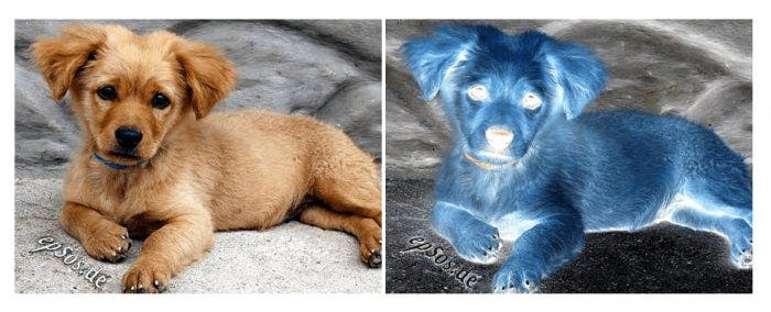The following image shows the result of inverting an image’s colours completely using a 100% default value: