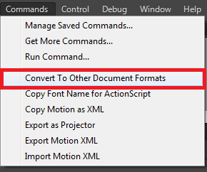 - Convert your ActionScript document to HTML5 Canvas document using the document type converter.
