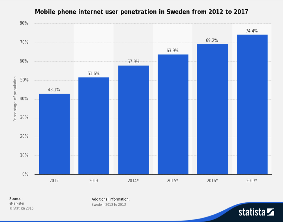 Den gyllene regeln är att alltid vara där din målgrupp är. Om du vill att de ska vara nöjda så måste du vara en expert på multikanalsmarknadsföring. Som du kan se i diagrammet ovan väljer alltfler allt fler att använda mobilen för att besöka webbplatser. När du designar din webbplats måste du därför antingen utveckla den med snabba responsiv design i åtanke så att webbplatsen automatiskt anpassar sig till smarta telefoners mindre skärmar eller utveckla en version av din webbplats specifikt för mobila användare. Det är inte valfritt. Det är ett måste.