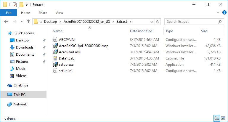 You will find both an msi, the installer for the major version, and a msp patch installer. The latter changes on the minor updates. We will use the Customization tool to work just with the MSI and create a MST transform file that can be applied.