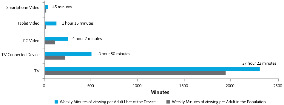 Weekly Minutes of Viewing by Device Among Adult Users Versus Adult Population