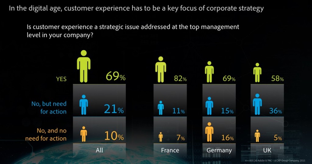 Not only has our daily access to the digital world of the Internet brought substantial changes to our consumer patterns; it has also strongly influenced the expectations we place in companies. Consumers are able to encounter their brands, and to receive a consistently positive customer experience, at any time, wherever they happen to be: and they certainly want it. Ultimately, this puts their loyalty to the test, as it only takes a simple click to switch from one brand to another. Hence, customer experience becomes a key factor of corporate strategy in the digital age. Roughly 70 percent of the companies interviewed as part of the PAC study have recognised this truth, and are dealing with customer experience as a top-level priority. Another 21 percent also perceive the need, but are yet to put any practical steps in place.