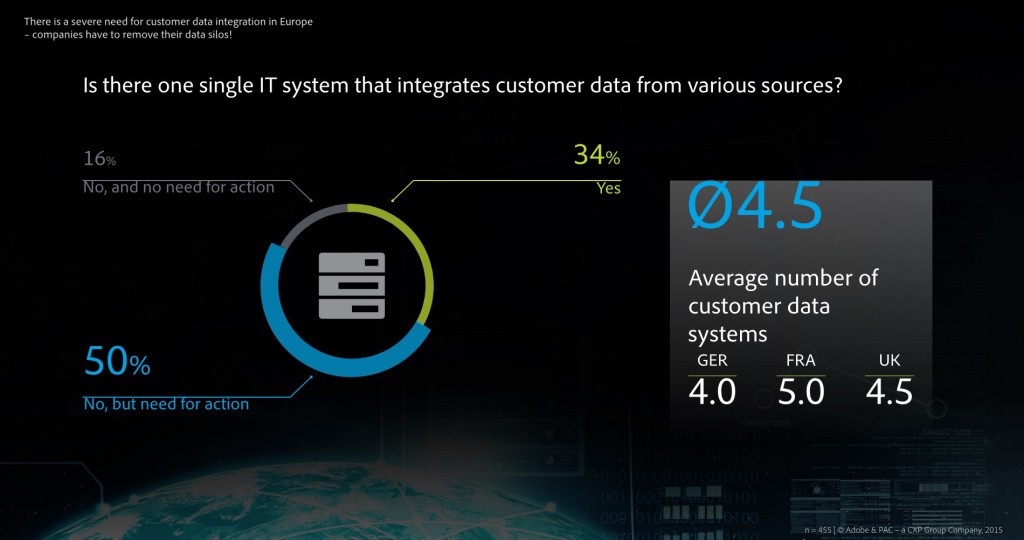 The inadequate involvement of IT creates yet another problem: in most European companies the study identified data silos that need to be eradicated. For instance, many companies use several IT systems that all generate customer data while remaining insufficiently interconnected and without any meaningful system of communication. Half of those interviewed are aware that they will have to establish an integrated IT system that incorporates all data produced throughout the customer journey, yet 43 percent of those interviewed believe IT has a less conspicuous role to play.