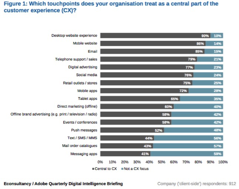 In another study by eConsultancy (Quarterly Digital Intelligence Briefings), we learn a little more about the priority of companies: optimizing the customer experience, creating contents providing added value, and consumer data are the three most common answers.