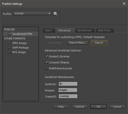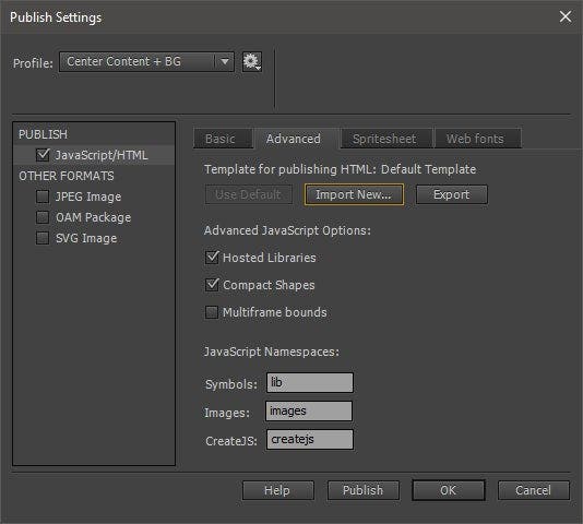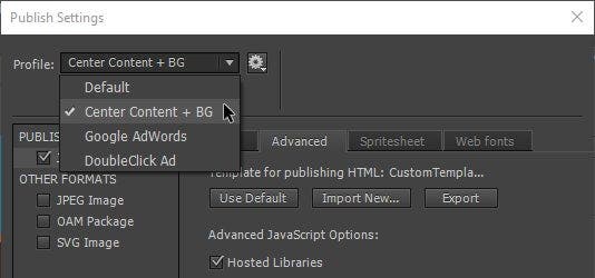 Using Animate CC HTML5 Canvas Templates with Multiple Publish Profiles