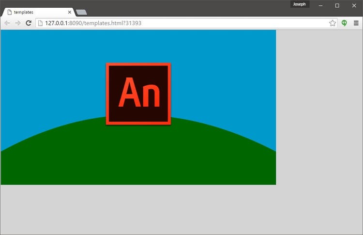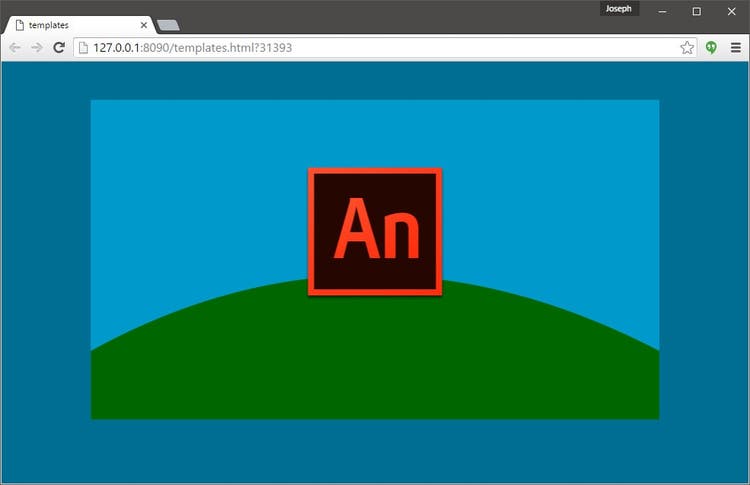 From here, we can once again test the project in the web browser by choosing Control > Test. The compiled HTML5 Canvas project will appear in a new browser window and the changes will become obvious with the entire background inheriting the Stage color chosen in Animate CC and the content itself perfectly centered – much nicer!