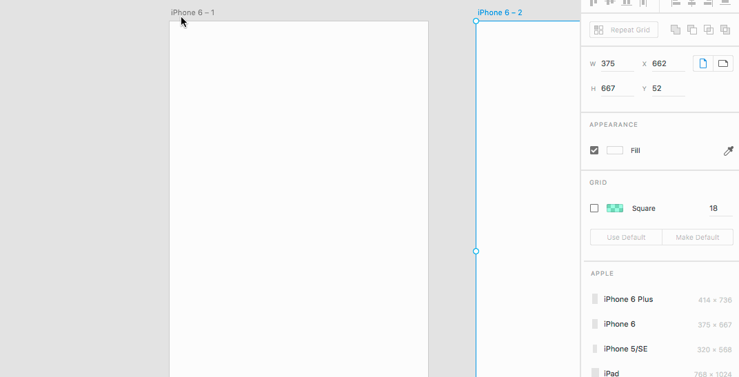 With this release, we are allowing you to set a custom grid on any artboard. The option to add a grid was one of the top voted features on UserVoice and we used this feedback to prioritize it. The grid allows you to set up standard spacing across your design enabling more precise layout and drawings. When a grid is enabled on an artboard, objects will snap to the grid.