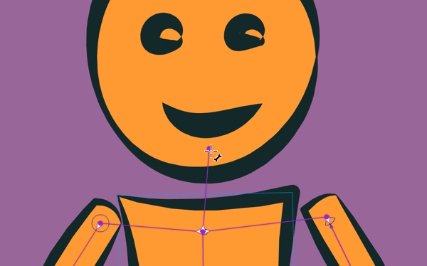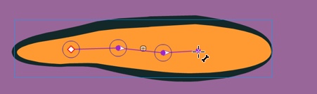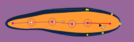 At this point, we can test how the armature behaves by using the Selection Tool to move the slug around. The movements will be based upon the bone structures we have created – but they may be a bit rough when taken to extremes. This is where the Bind Tool comes into play. Selecting any of the bones with the Bind Tool allows us to adjust the control points which determine how the shape reacts to movements of specific bones. Spending some time to be sure all control points are positioned in an acceptable way will go far in making any movements behave as you intend.