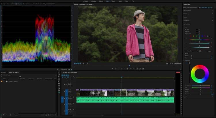 First, switch to the Color workspace by selecting it from the workspace bar at the top of application window. Note that when you do this, the clip currently under the playhead is automatically selected so you can apply a color correction effect to it.