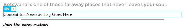 The new div tag appears on the page with placeholder content.