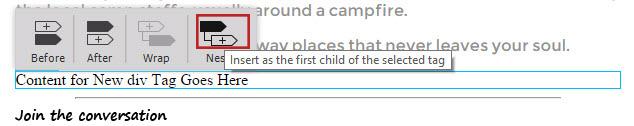 Select Insert on the Menu bar, select Div, then select After in the Wrap Tag options.