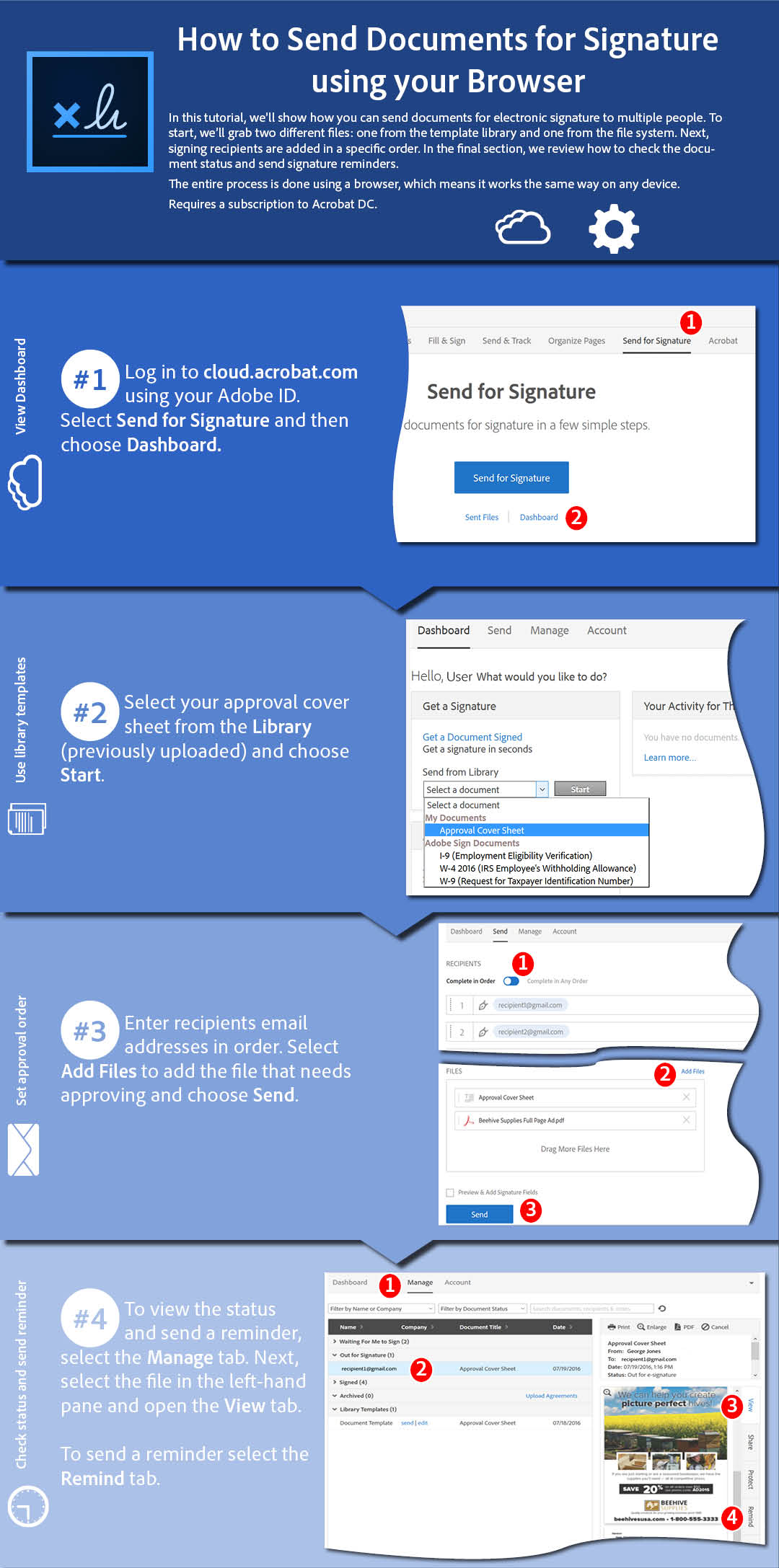 In today’s fast-paced business environment, it’s critical to keep business moving – no matter where you are. Whether you’re in the office, on an airplane, or in a hotel, you’ll never have to worry about holding up contract cycles again. Acrobat DC has a number of different tools that empower you to keep things running at all times, by gathering signatures in person or delegating signing tasks to your team. Even if the machine you’re using doesn’t yet have Acrobat installed, you can still send a document for signature in your browser with this step-by-step guide.