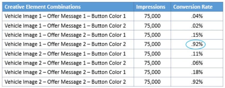 For prospecting campaigns, the creative elements within the ad — images, border and button colors, messages, offers, call-to-action text, data-feed components, and recommended products, for instance — are optimized to meet the advertiser’s performance objectives. An advertiser could simply target their ads by region or zip code and allow DCO to optimize the ad’s creative elements to drive the best engagement and performance.