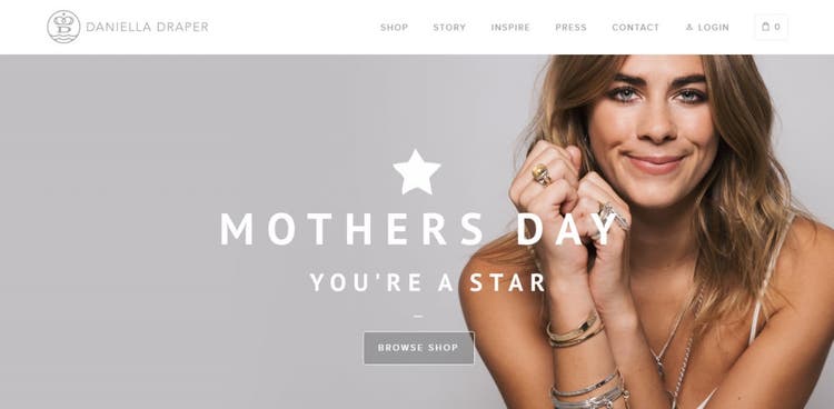 The homepage of Daniella Draper is a good example of a hero image in use. It looks like a natural part of the design and at the same time focuses user attention on a current promotion.