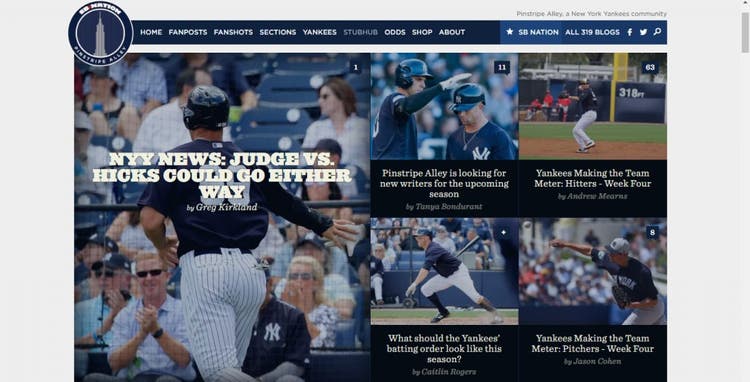 Pinstripe Alley uses a grid to feature a few important community events. Notice that the most important information is the most visually prominent.