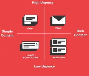 The most effective mobile messaging strategy is to use different message types: push notifications, email, in-app notifications and news feed updates. Diversify your messaging — your messages should work together in perfect harmony to create a great user experience.