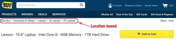 - Where am I? Breadcrumbs inform site visitors of their location in relation to the entire site’s hierarchy.