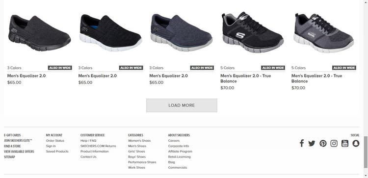 People understand the concept of a footer, and they expect to find links to important website information there (such as contact information), but long scrolling often impedes the user’s access to the footer: New items continually load as the user approaches the bottom of the list, pushing the footer out of view. While this sounds like a serious problem, it can be solved with a “Load more” button. With this solution, content is loaded on demand: New content won’t automatically load until the user clicks the “More” button. This way, the user can get to the footer easily without having to chase it down. You can find practical tips on how to implement this solution in the article ““Infinite Scrolling, Pagination or ‘Load More’ Buttons? Usability Findings in eCommerce.”