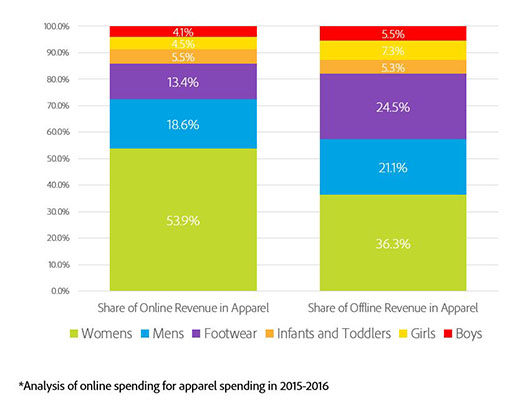 Our apparel numbers also show how intense fashion velocity is for women. Of the more than 7,000 new apparel products that appear online every day, nearly half are aimed at women (3,150), while only 1,750 are geared toward men, and the rest fall into the children’s, babies’, and footwear categories. And women respond—more than half of all online spending for women’s apparel (56 percent), goes toward products that have just hit the market in the previous three months, compared with 38.8 percent of spending on the newest men’s items.