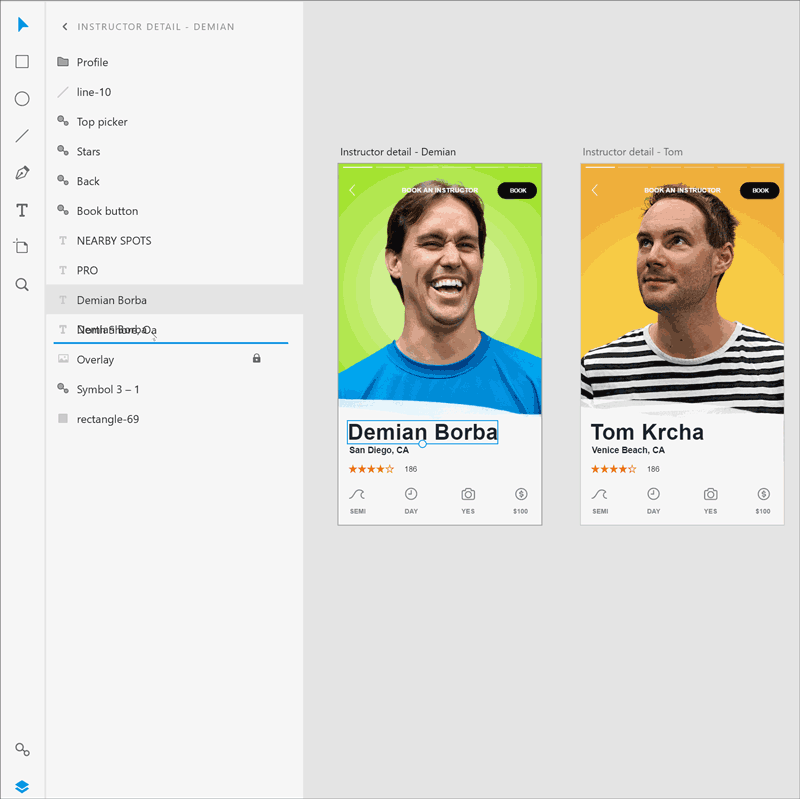 As a UX designer, you build buttons, navbars, sliders, and many other types of components that are repeated throughout your design. Yet, your designs can change on a dime. Symbols save you time and help you stay nimble. With the June release of XD, you can now customize the text and bitmaps for individual symbol instances – giving you greater design flexibility. If the individual change you made should be applied to all instances of that symbol, you can select “Update All Symbols” from the context menu to make that change. For a quick overview of how Symbols overrides work, check out our tutorials (Go to 01:49 on the Mac tutorial, and 09:37 on the Windows tutorial).