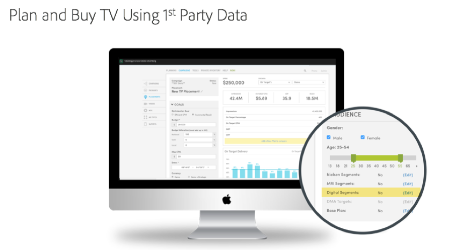 Native integration with Adobe Analytics Cloud enables audience-based linear TV planning and buying with first-party data.