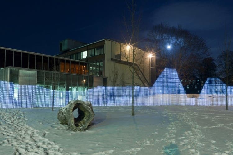 The Light Painting WiFi reveals the invisible landscapes of WiFi networks that weave through the our neighborhoods and cities. Using a measuring rod with 80 LED lights that visualize signal strength and long exposure photography to capture the “immaterial terrain” of the internet around the city of Oslo. The images show the invisible information in our urban landscapes.