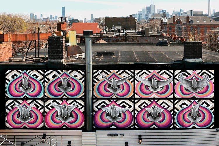 Some artists post their work online to encourage people to explore out of the way places. The video game pixel art of Toronto’s GameBoyOne can be found in less traveled alleys and abandoned buildings, where our favorite 8-bit video game characters live in tucked away spaces.