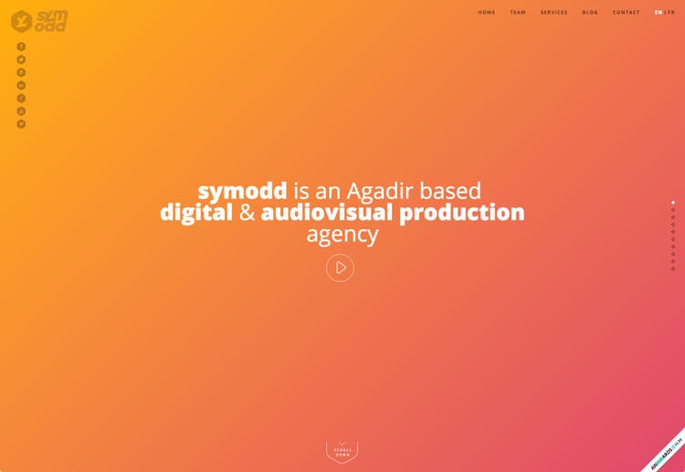 Gradients can improve visual communication. The transition from orange to pink in Symodd’s example below gives depth and contrast to the interface, and it creates some eye-catching visual effects. The shift from light to dark follows the natural scanning patterns of the human eye, moving from the top left of the page to the bottom right.