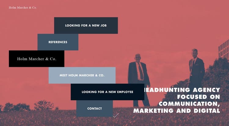- Soft and modest combinations of colors create a serious atmosphere. In Holm Marcher & Co, shown below, every detail contributes to the businesslike atmosphere, and the background image is no exception.