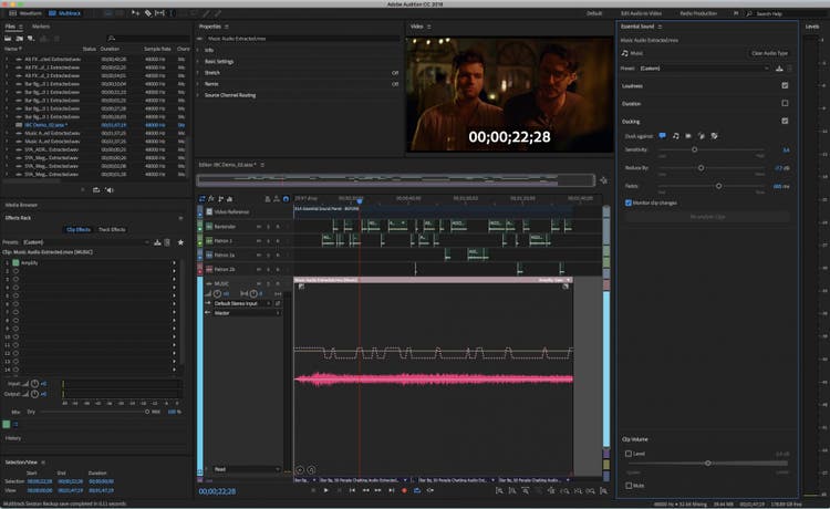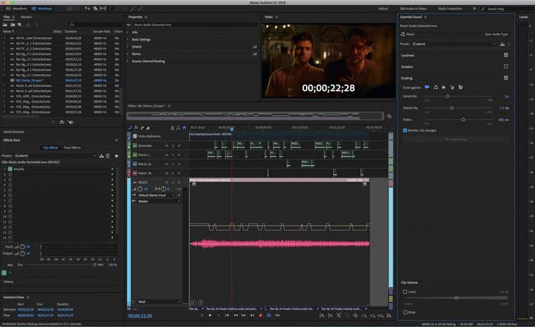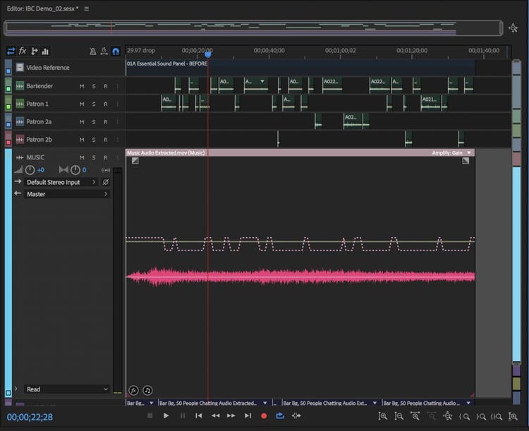 One of the most time-consuming tasks that any editor faces is ensuring the different elements of their project blend well and get out of the way of everything else. The art of mixing, of adjusting the volume of background music so that dialogue or sound effects are clear and audible, is often what separates the professional-sounding projects from amateurs. Audition already offers several methods to suit individual tastes and styles: manually adjusting clip volume keyframes, riding a volume fader up and down and capturing these movements as automation, or even setting up a complex side-chain input compressor chain. These methods can usually achieve the best results, but they also take a lot of work, a lot of time, or a lot of technical know-how.