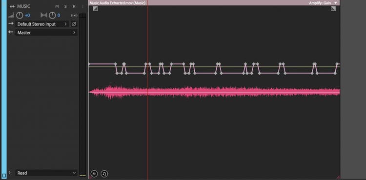 Select the icons for the audio content types you wish to duck against. Dialogue, Music, Sound Effects, Ambience, or un-tagged clips. Choose one type, or several. You’ll see the new dotted keyframe envelope appear on the music clip.
